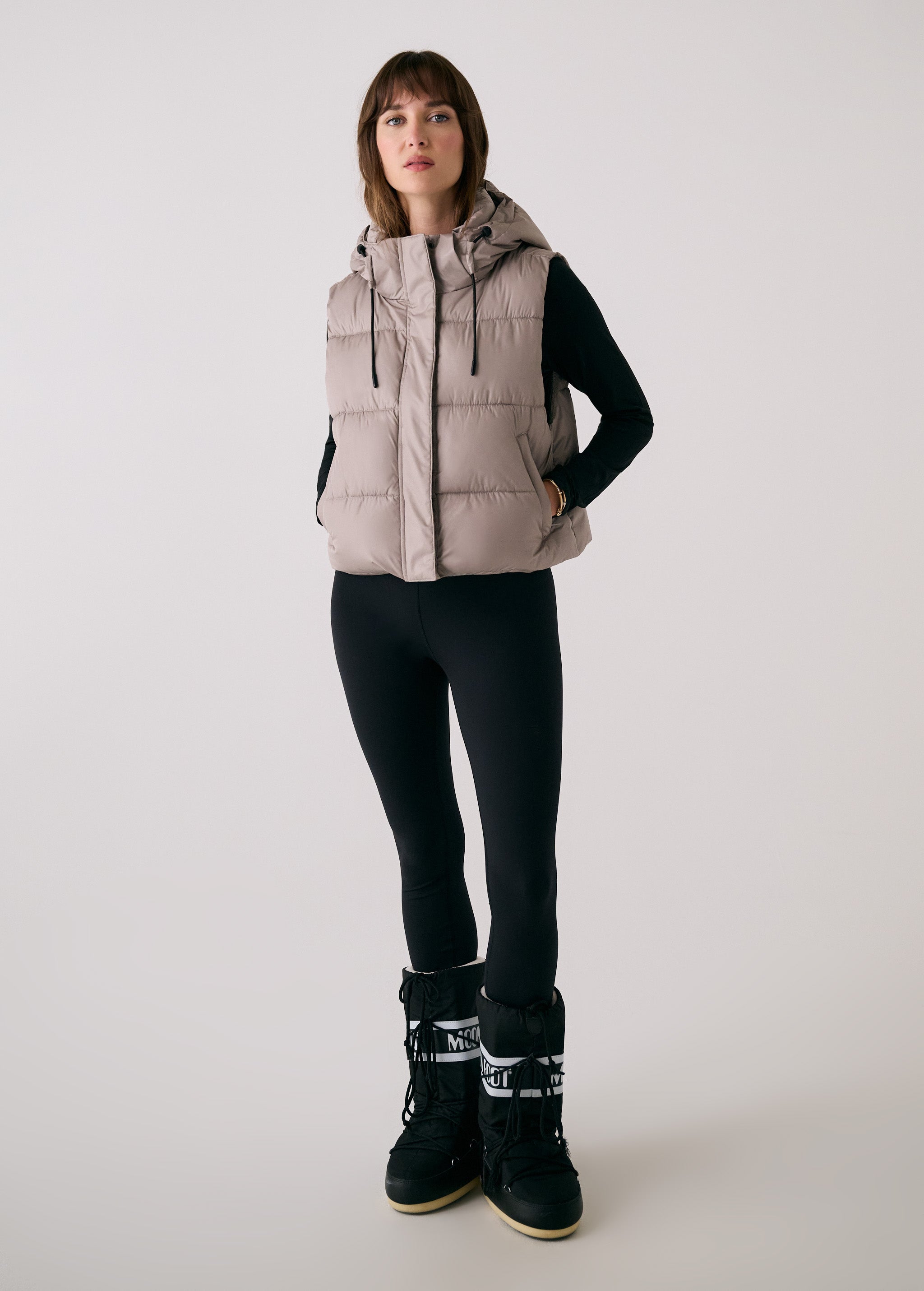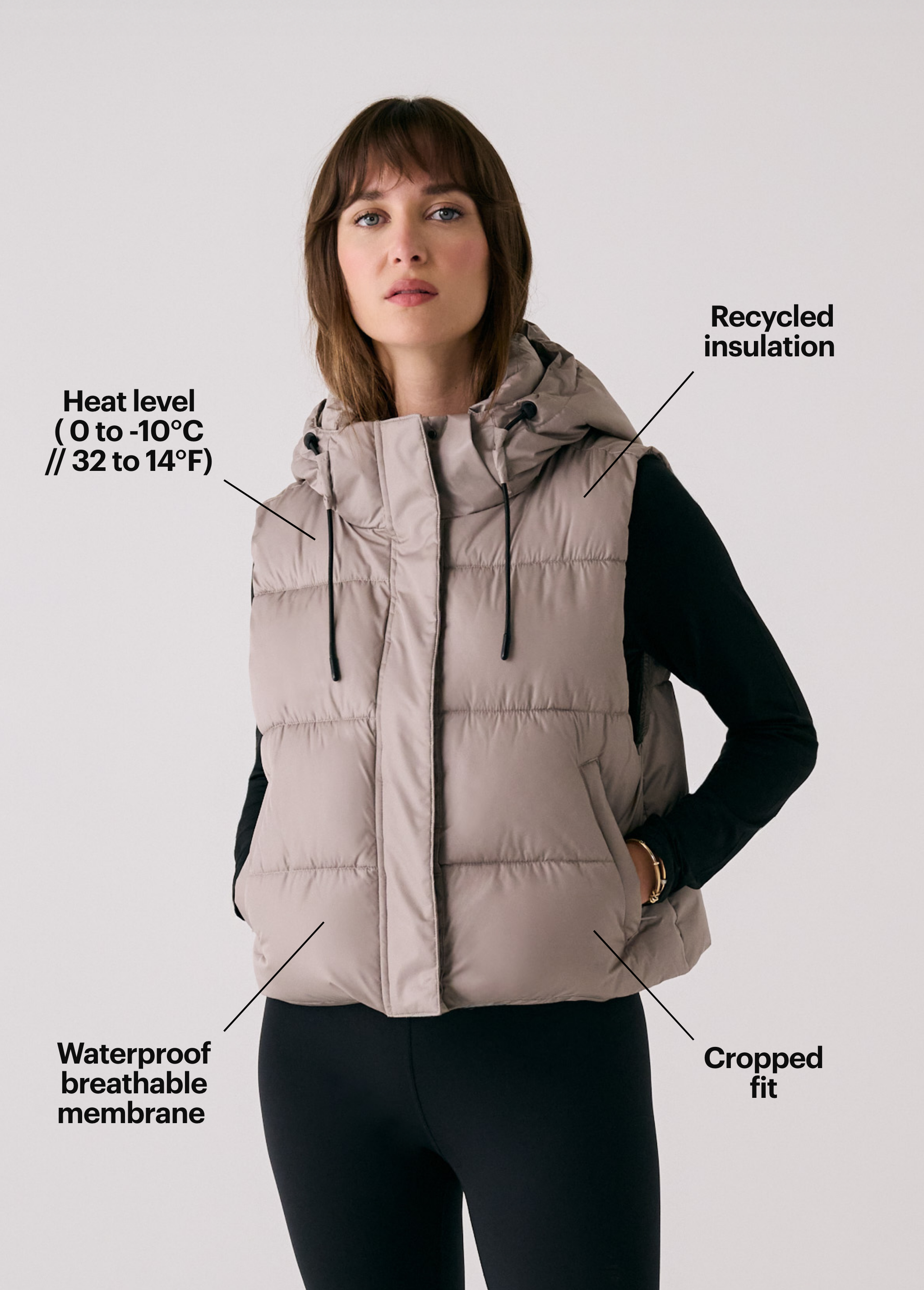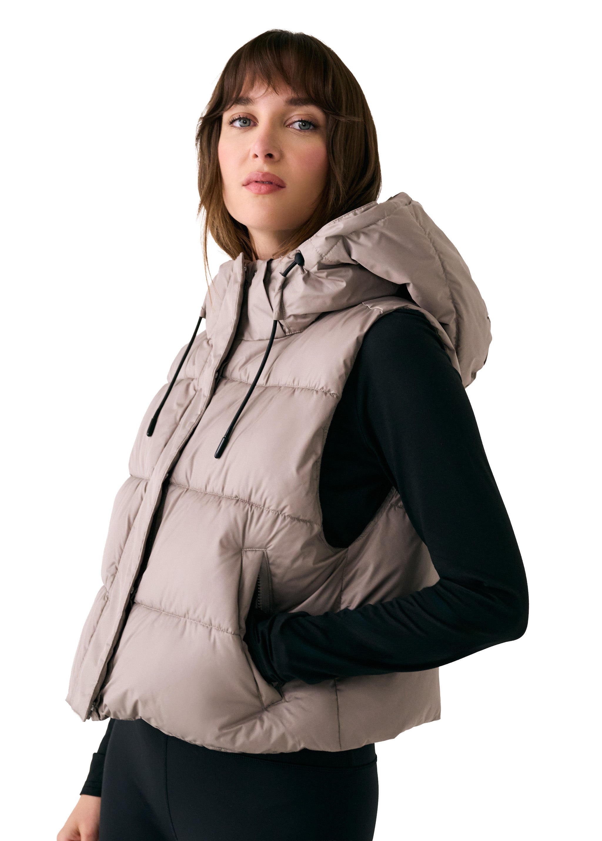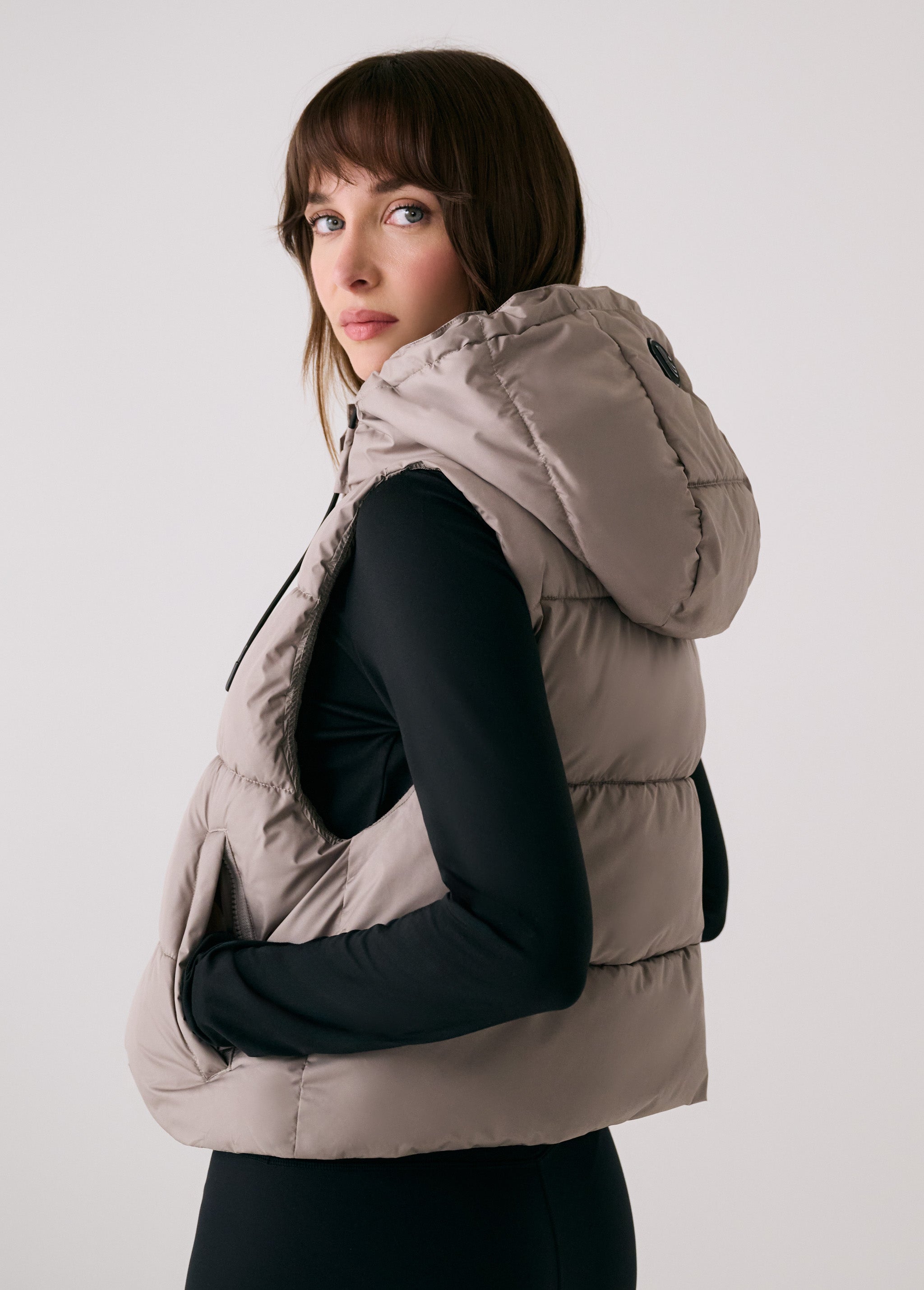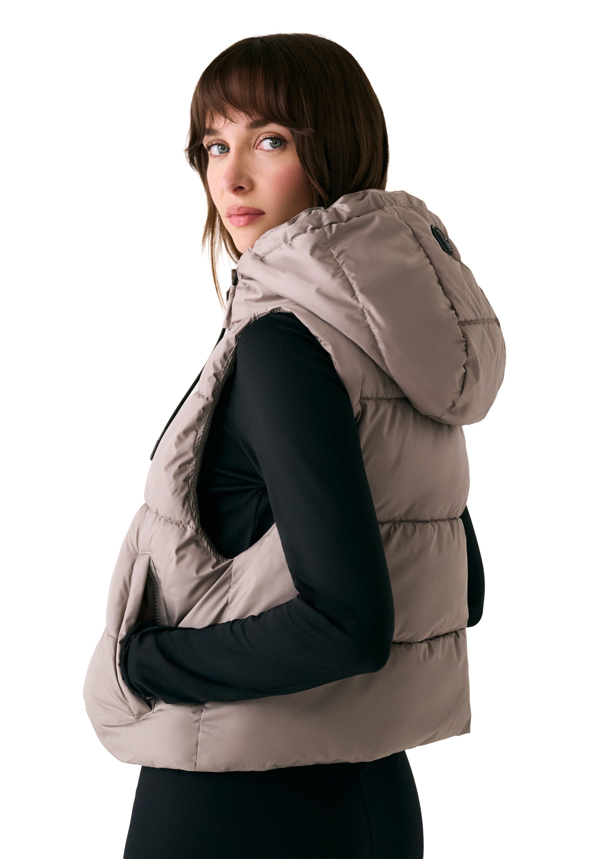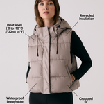 The London Cropped Vest delivers weightless warmth with a sleek, relaxed fit and a slightly cropped length. Designed with recycled insulation and water-repellent fabric, it keeps your core cozy without adding bulk. Wear it over a hoodie or under a coat. The fixed hood and zippered pockets, it's the perfect transitional piece.