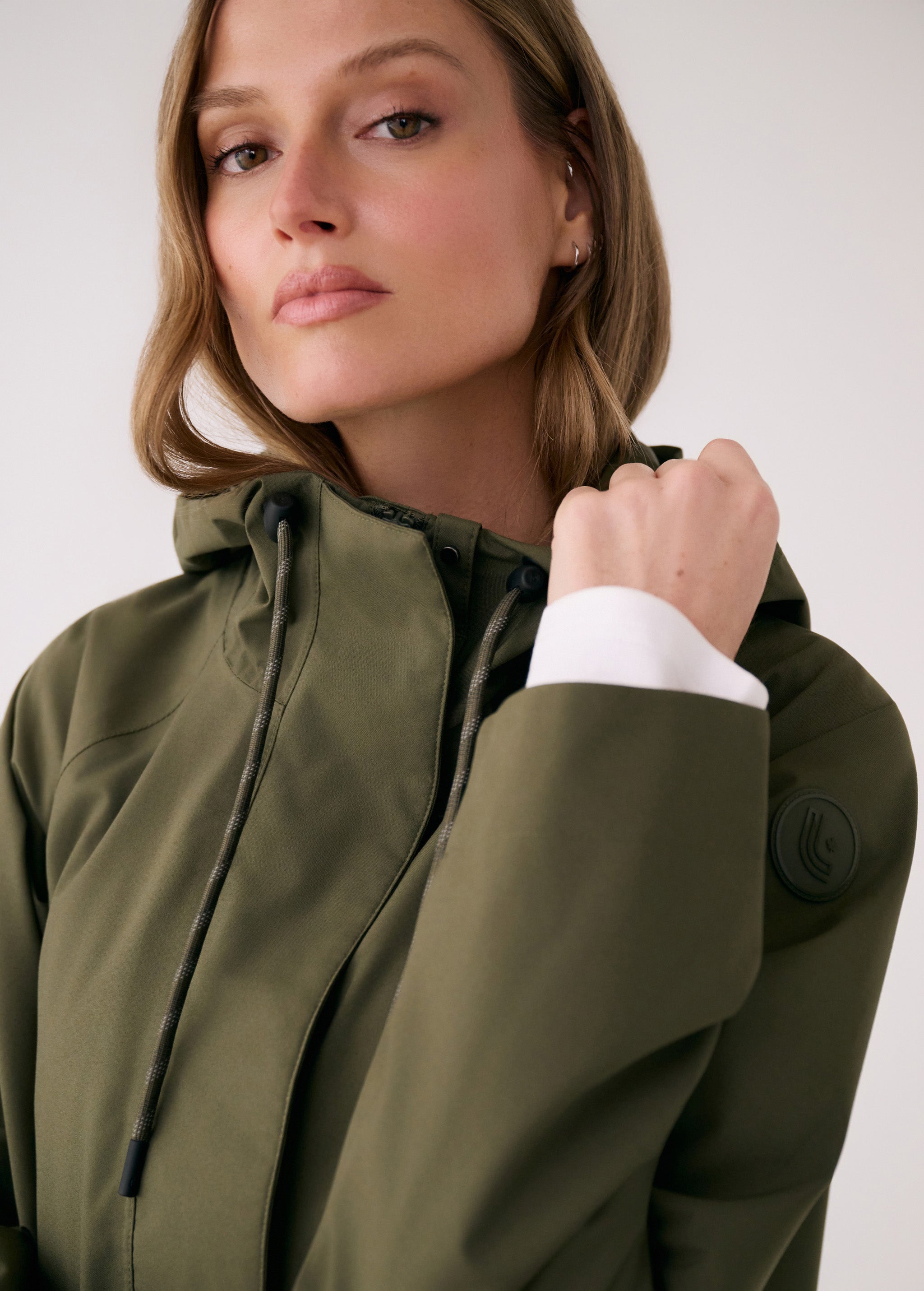 - Logo patch at left shoulder