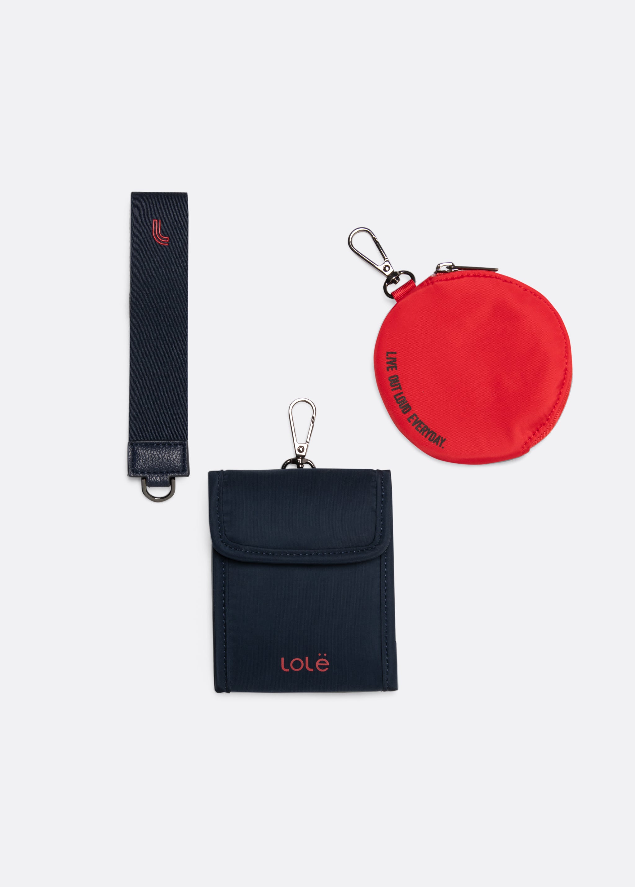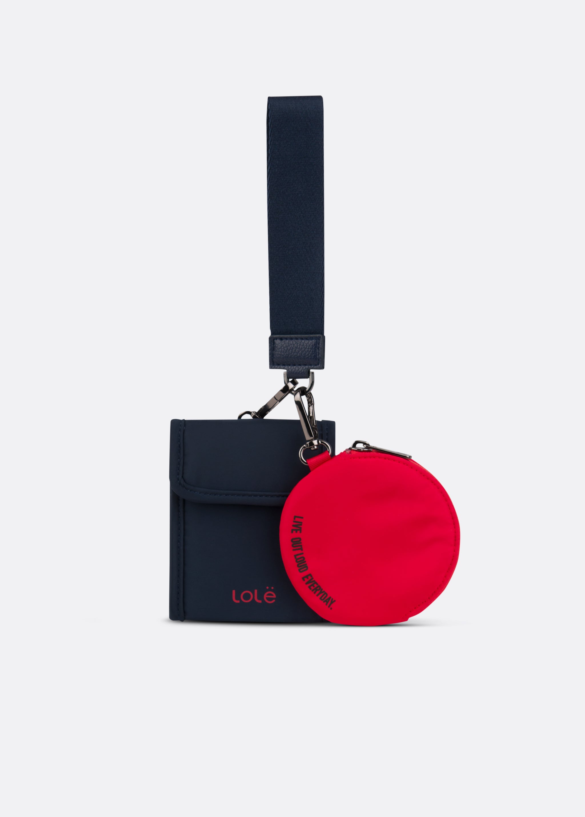• Dual detachable pouches; Detachable wristlet