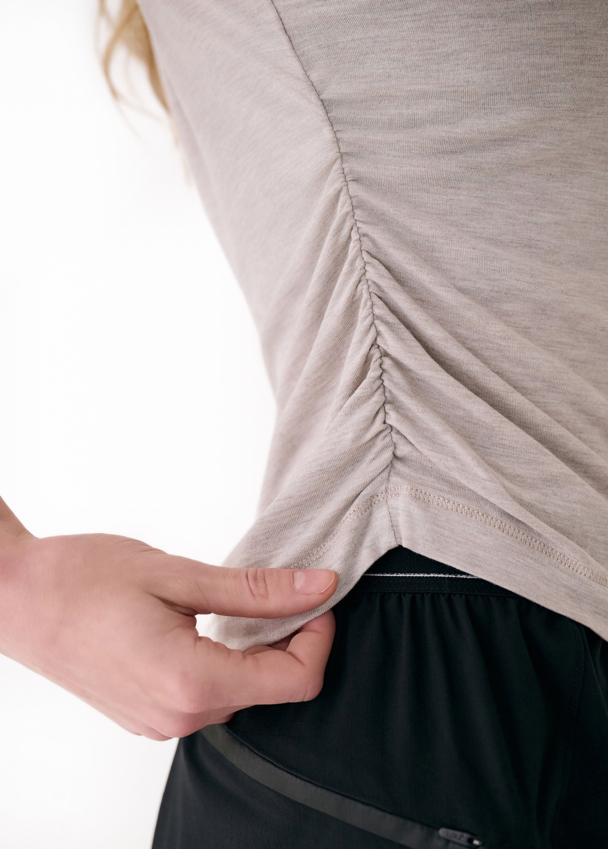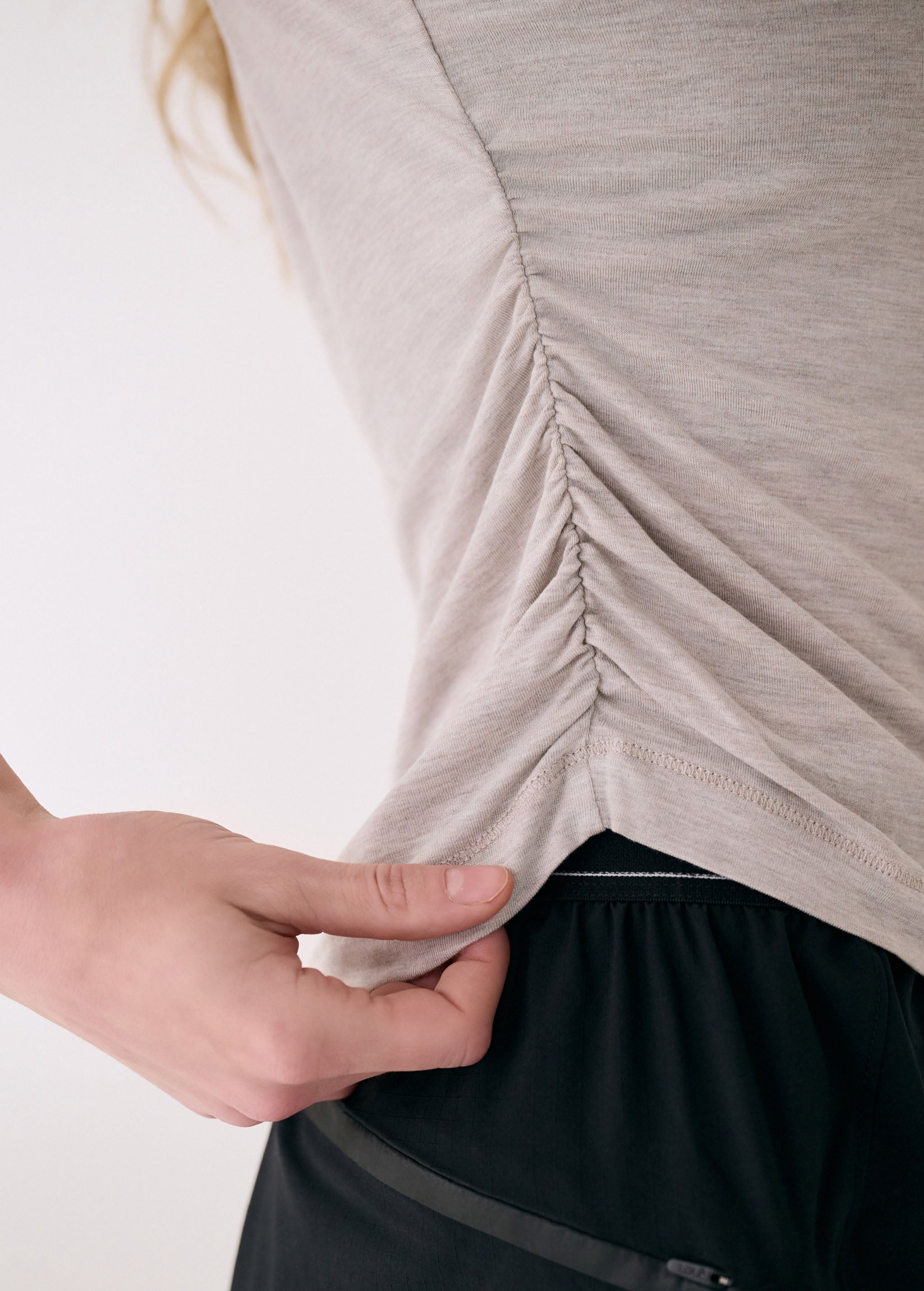 Un t-shirt à manches courtes avec un petit plus. Léger et respirant, le Elisia mise sur de subtiles fronces sur les côtés pour donner du relief à la silhouette. Offert en trois teintes polyvalentes qui s'agencent avec tout.