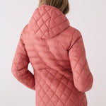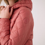 Hi there! Thank you so much for taking the time to leave a review for our Base Packable Jacket. We're so happy to hear that it's keeping you warm and that you're enjoying the fabric and hood. We apologize that the dark cherry color was not as bright as shown on our site. We will definitely take note of this for future reference.